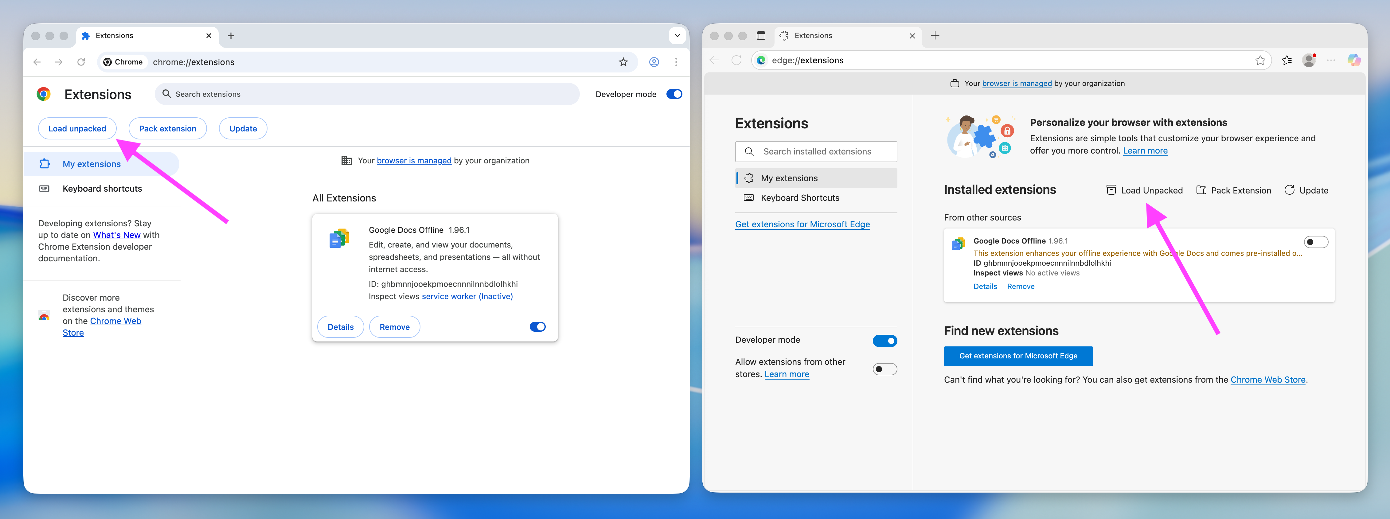 To install this package, open the Extensions control of your browser by opening the address chrome://extensions either in Google Chrome or Microsoft Edge: