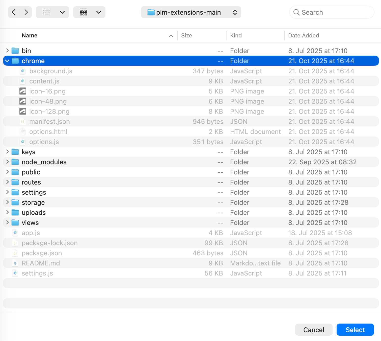 Click this button and browse for the folder /chrome of this PLM UX Extensions package and click Select: